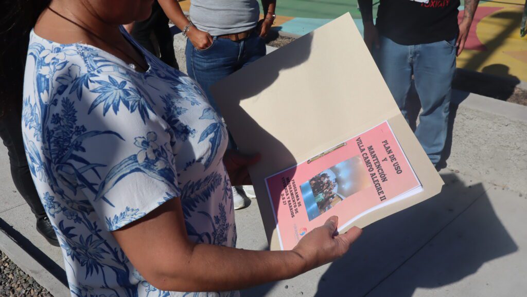 Como parte de la jornada, se hizo entrega del Manual de Uso y Mantención, una herramienta que busca orientar a los vecinos sobre el cuidado de los distintos elementos de las plazas. Su propósito es apoyar a la comunidad en la conservación de estos espacios, asegurando que puedan mantenerse seguros, funcionales y llenos de vida durante los próximos años.