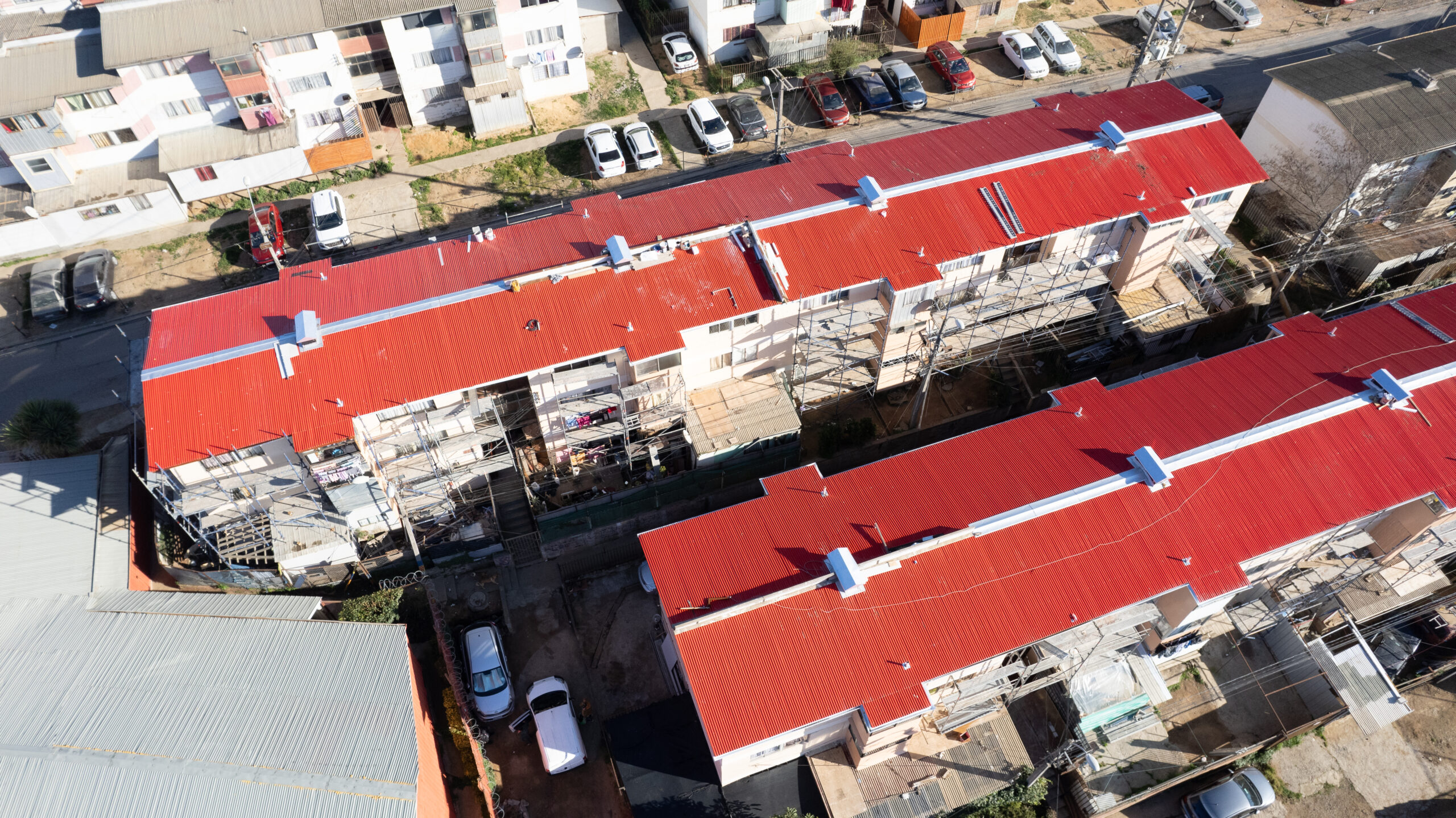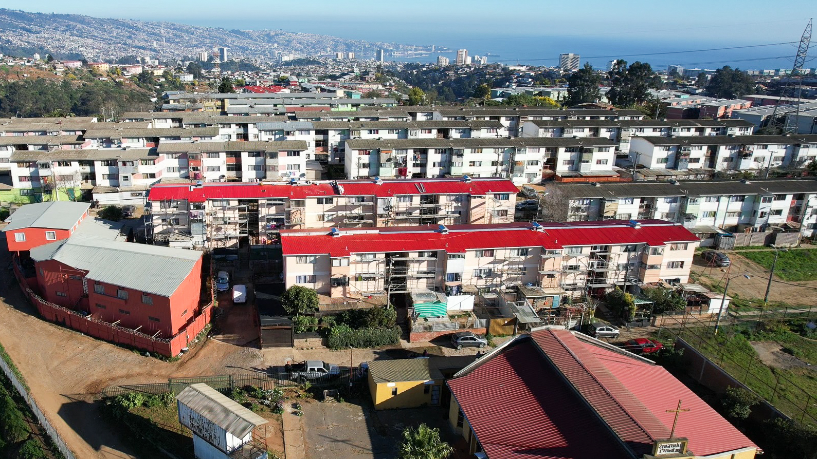 En Las Palmas, en la parte alta de Placeres, se encuentra la Copropiedad en desarrollo, que traerá una solución habitacional para 48 familias. Esta intervención nace a raíz de distintas problemáticas señaladas por los vecinos, como filtraciones de agua, que afectan directamente a los departamentos superiores y de manera indirecta a los de más abajo. Además, se identificaron problemas estructurales en las escalas de los blocks. Para dar solución, se intervinieron en primera instancia los techos, haciendo remoción de asbesto e instalando infraestructura actual, que garantice el resguardo de los habitantes. Se prevé la entrega de los trabajos finalizados a finales de agosto del presente.