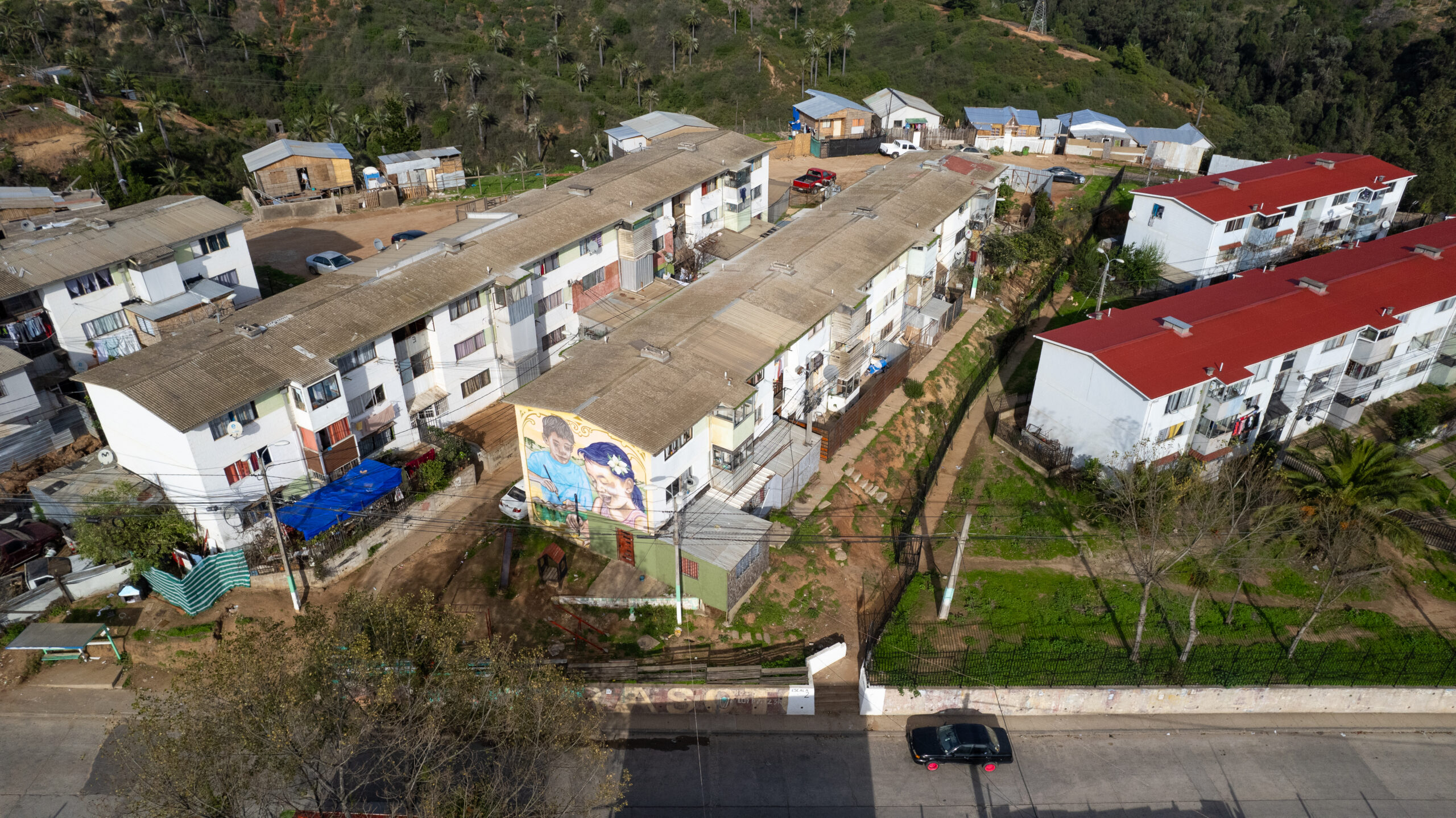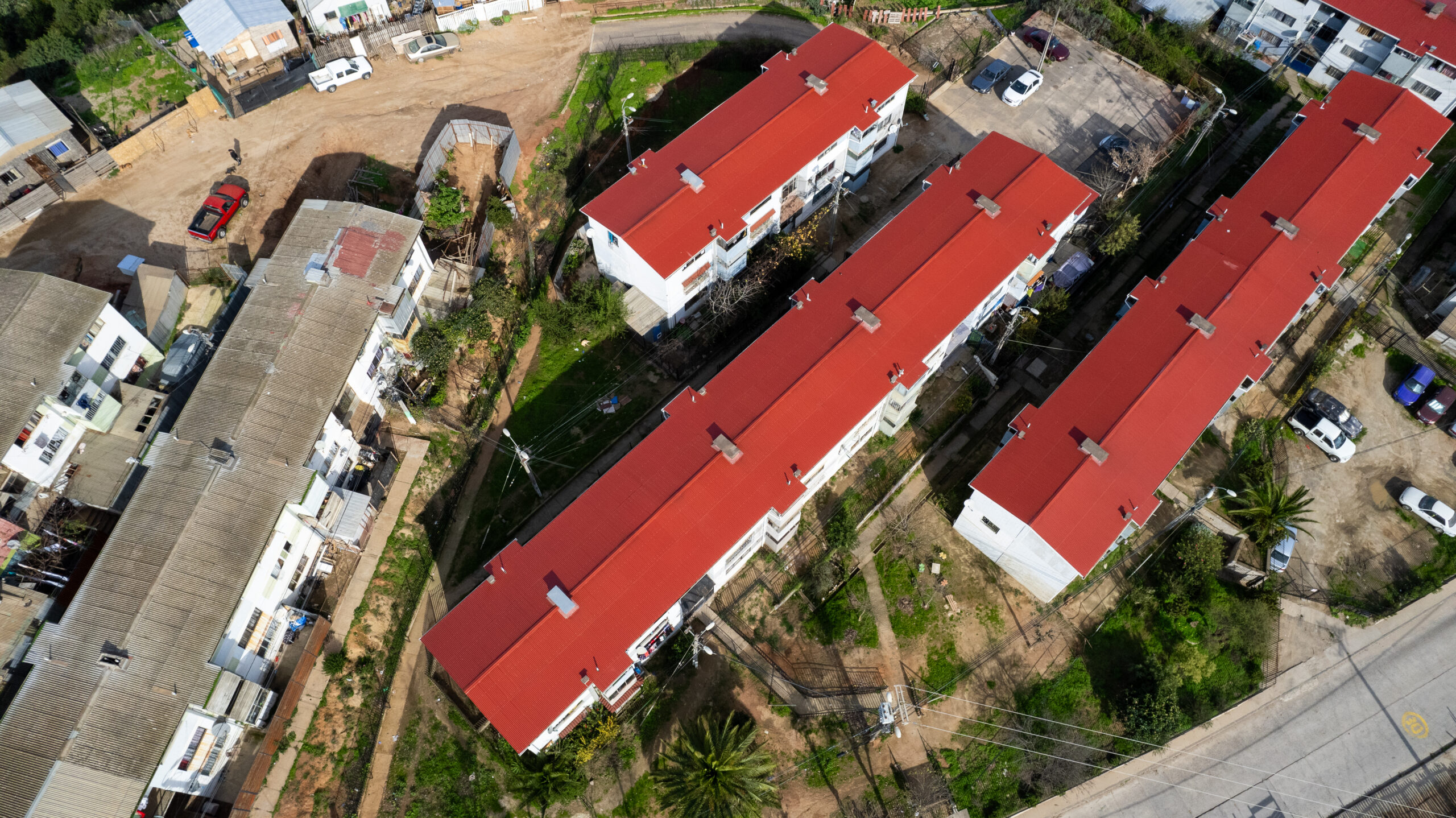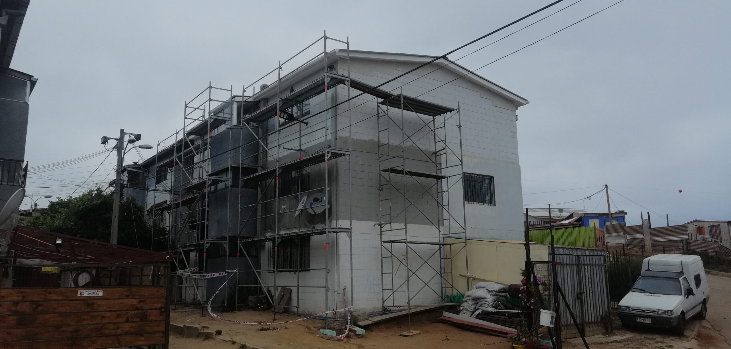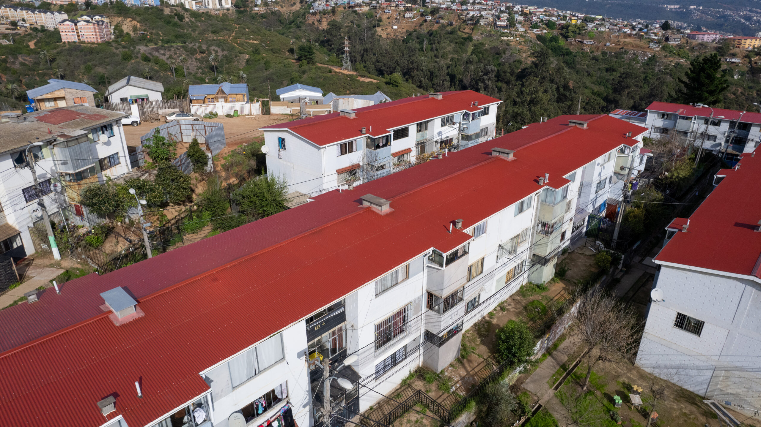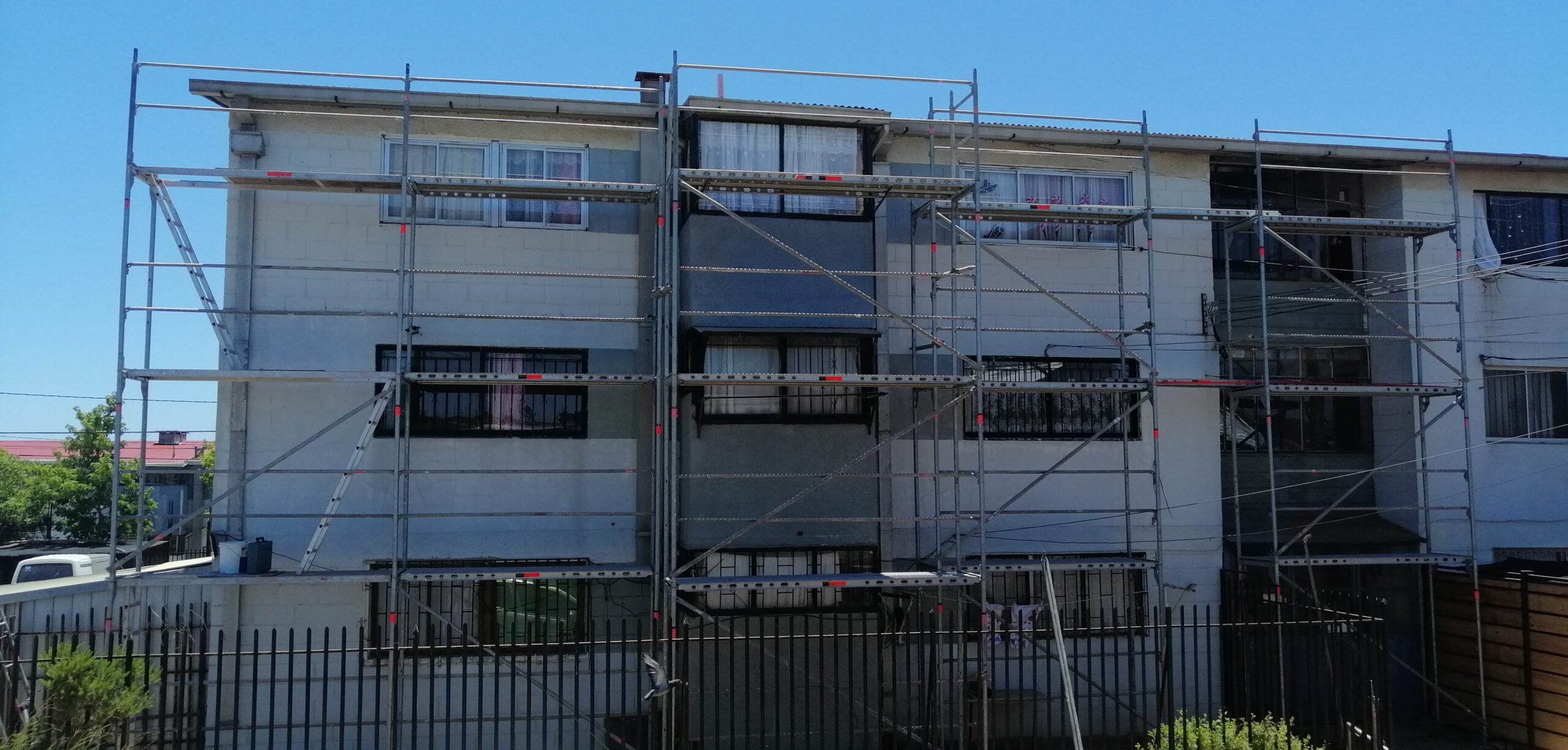 Los residentes del conjunto habitacional Las Palmas de la Copropiedad G, en Valparaíso, buscaron asistencia en Rukapewma para iniciar los trabajos de mejora en los edificios. Esta intervención comprendió retiro de los techos viejos con su correspondiente remoción de asbesto, además de reemplazo de piezas dañadas en las escaleras, cierre perimetral e impermeabilización de fachadas