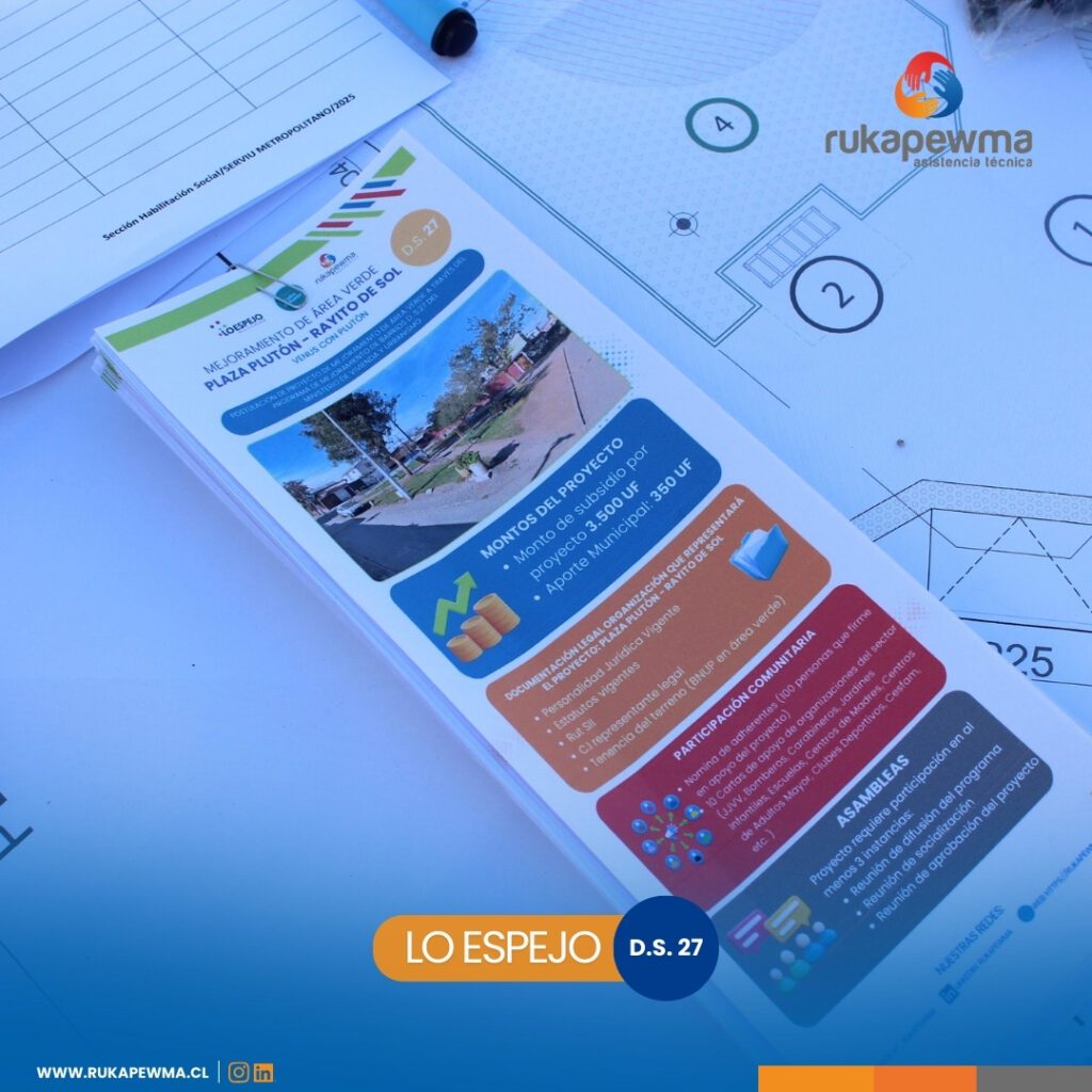 El pasado jueves realizamos una jornada de difusión y socialización junto a distintos sectores de la comuna de Lo Espejo, instancia en la que nos reunimos con vecinos y vecinas para compartir información sobre los proyectos y conocer sus ideas respecto al futuro de sus espacios públicos. Durante la actividad entregamos material informativo y desarrollamos una dinámica participativa que permitió recoger opiniones, propuestas y necesidades de la comunidad.
