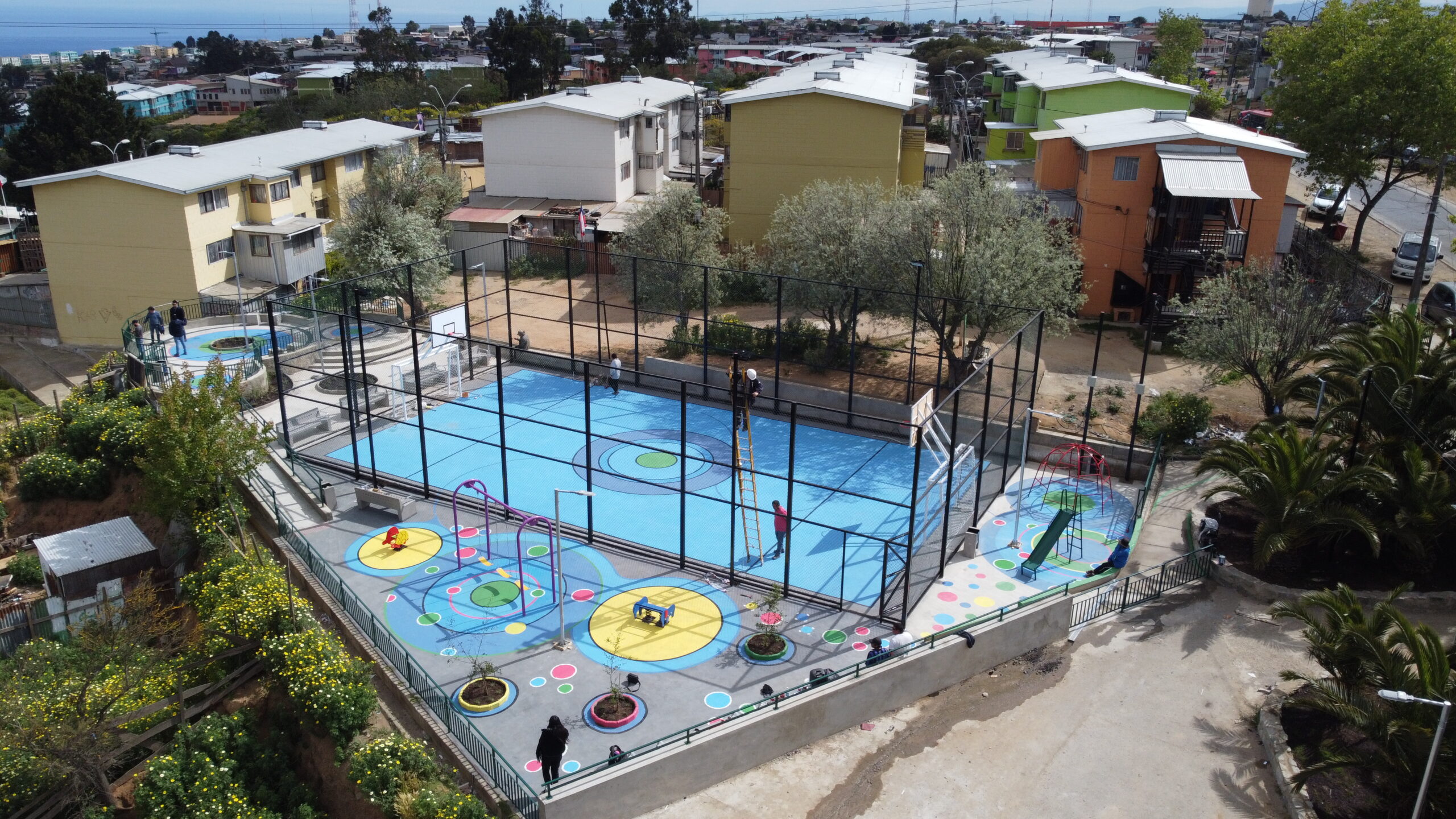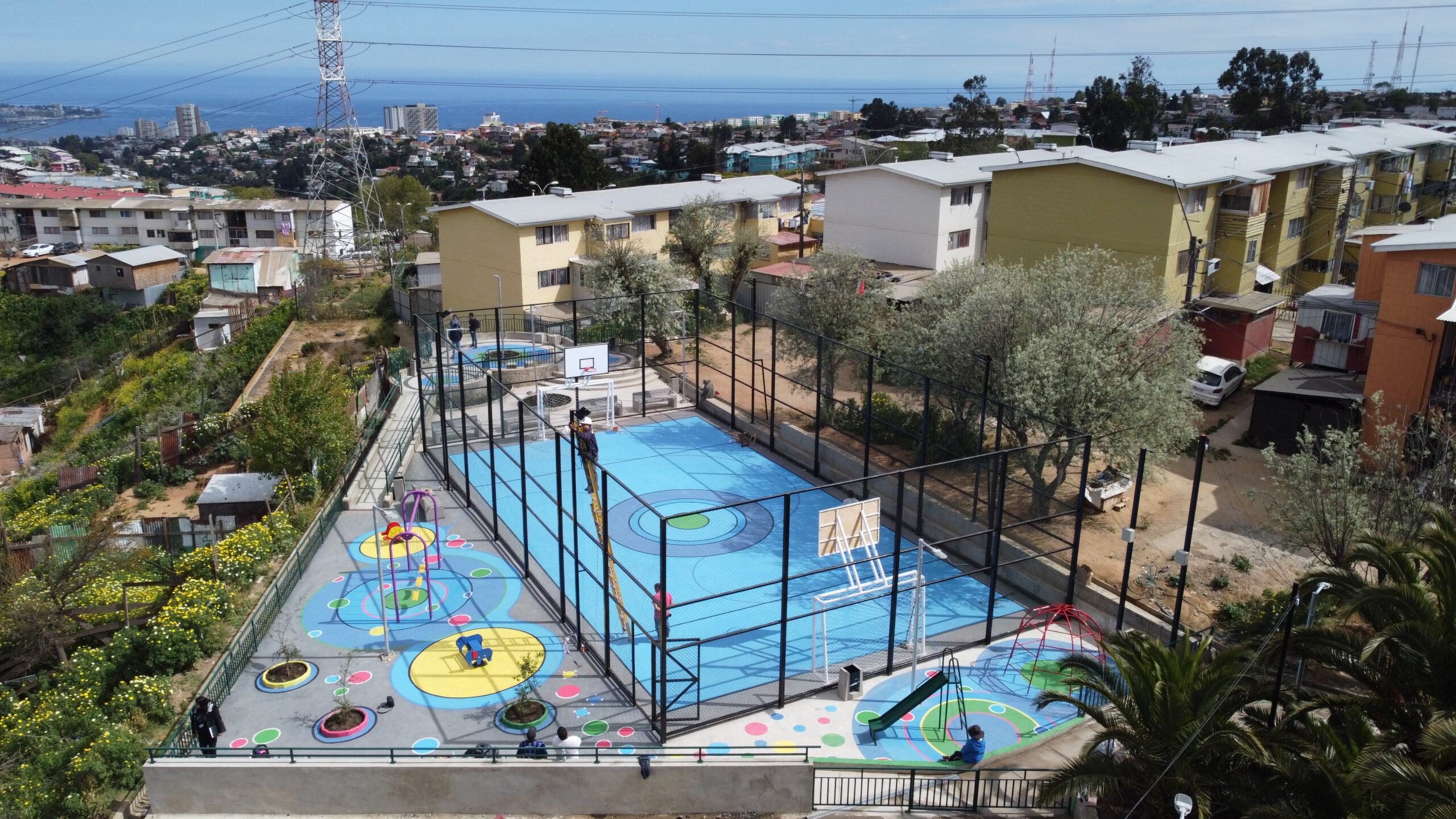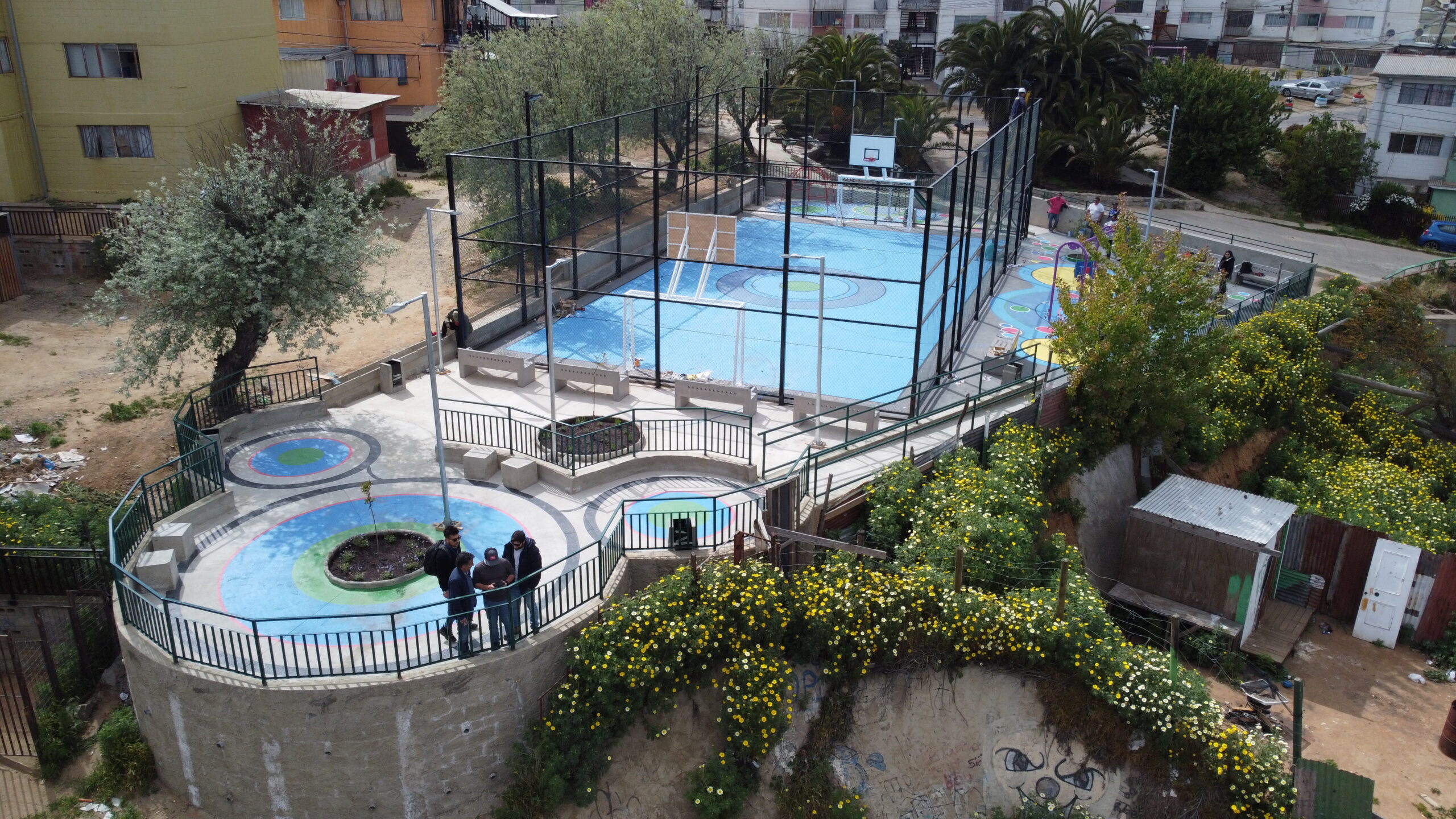 En calle Las Palmas de Valparaíso, se gesta el proyecto de mejoramiento y construcción de edificación comunitaria más esperado por los vecinos de las copropiedades del sector, una renovación sustancial de su espacio público y áreas verdes, al ser intervenida una descuidada zona en la que antiguamente se acopiaba escombro y basura, para ser transformada en un foco de encuentro vecinal con la construcción de un mirador y de deporte, gracias a la construcción de una multicancha en la que adultos, jóvenes y niños pueden practicar baby fútbol, básquetbol o voleibol.