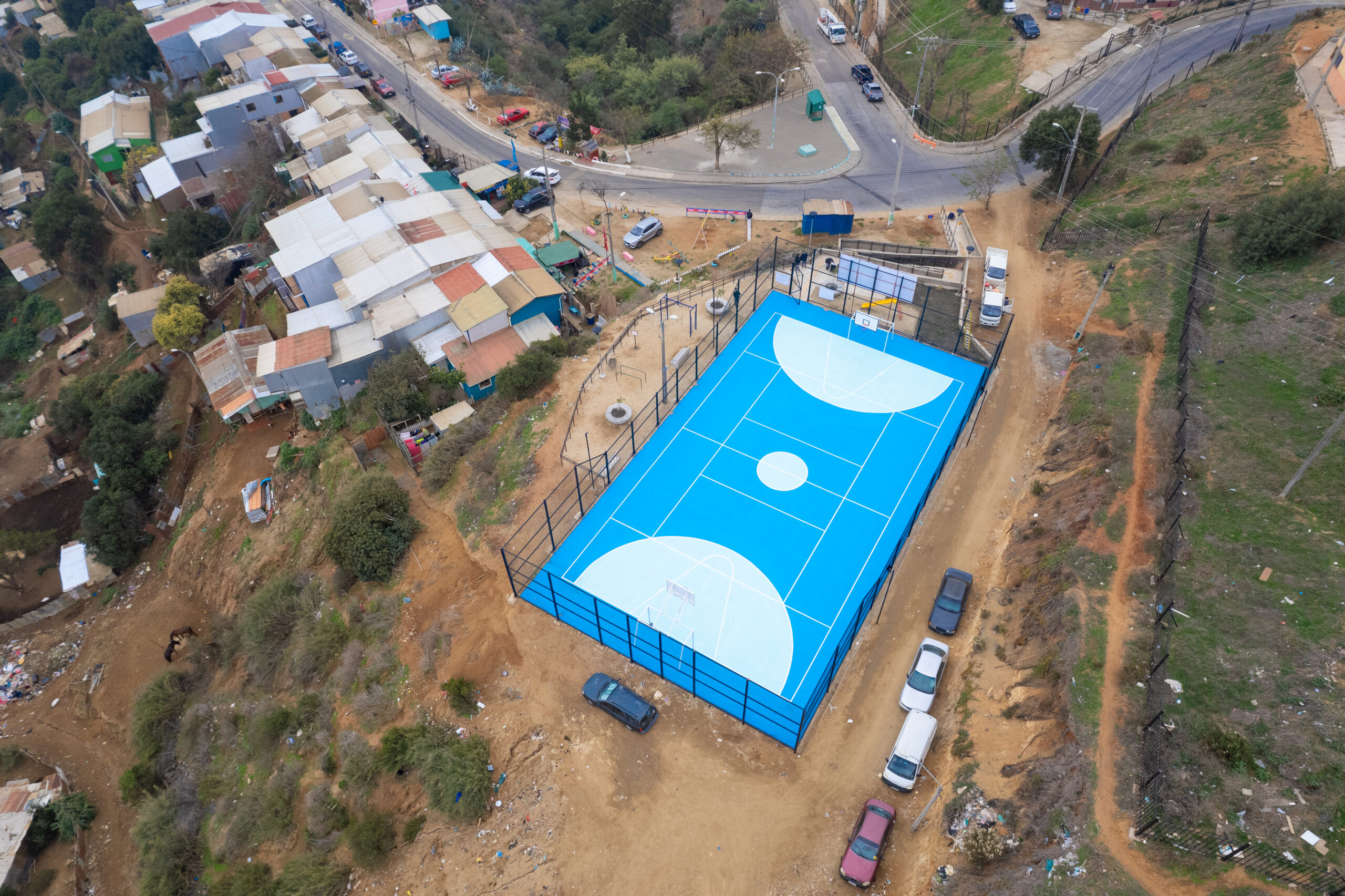 En Rodelillo, Valparaíso, el Club Social Deportivo y Cultural Nueva Unión Miguel Lucero, los vecinos, en asistencia con Rukapewma, se organizan para darle nueva vida a la multicancha ubicada en calle Cordillera de Los Andes. En esta intervención se buscó mejorar el pavimento de la multicancha con cierre perimetral, además de arcos nuevos, con un trabajo de pintura y demarcaciones en el suelo de la cancha. Además, se realizó un pavimento de circulación, un área de juegos infantiles y máquinas de ejercicio en un costado de la cancha. Todo esto, acompañado de nuevas luminarias en el sector para otorgar seguridad al espacio público, contenedores de reciclaje y bicicleteros