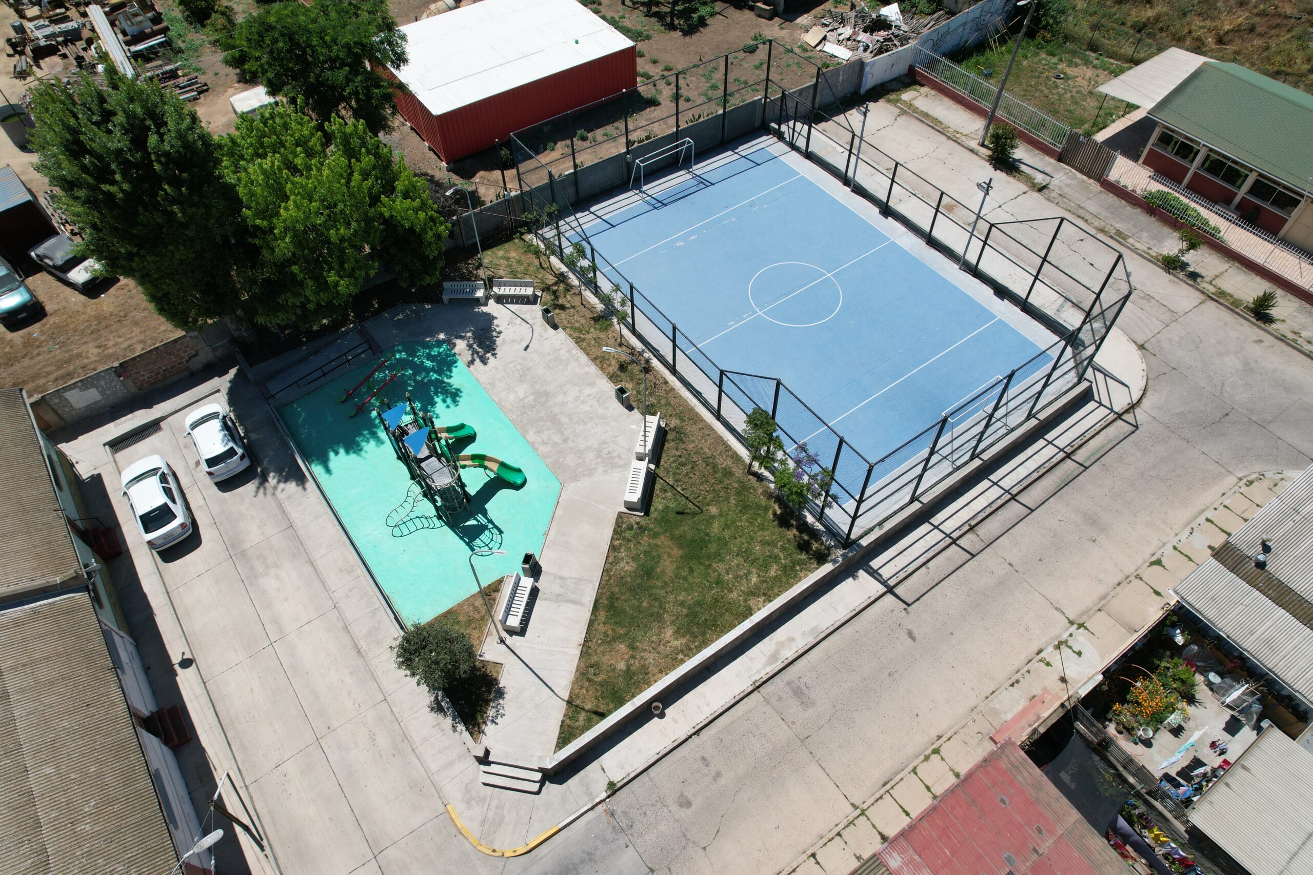 En la histórica población CCU, en dónde viven las y los trabajadores de la compañía del mismo nombre, se encuentra la plaza de encuentro para las vecinas y vecinos del barrio que desde sus inicios no había tenido una mejora significativa a la fecha. Por lo que este proyecto de mejoramiento vino a cumplir un anhelo de mucho tiempo, el de otorgarle una mejor calidad de vida urbana a niños, niñas, adolescentes y adultos. Promoviendo las instancias de esparcimiento con la zona de juegos y la vida sana a través del deporte con el mejoramiento de la cancha de baby fútbol a uno de sus extremos.